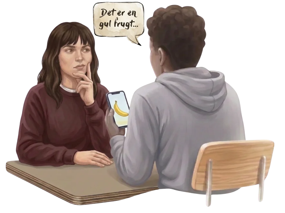 A starter med at forklare et ord uden at bruge selve ordet.